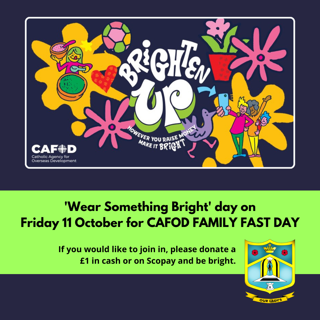 Our Lady’s ‘Wear Something Bright’ day on Friday 11 October for CAFOD FAMILY FAST DAY.