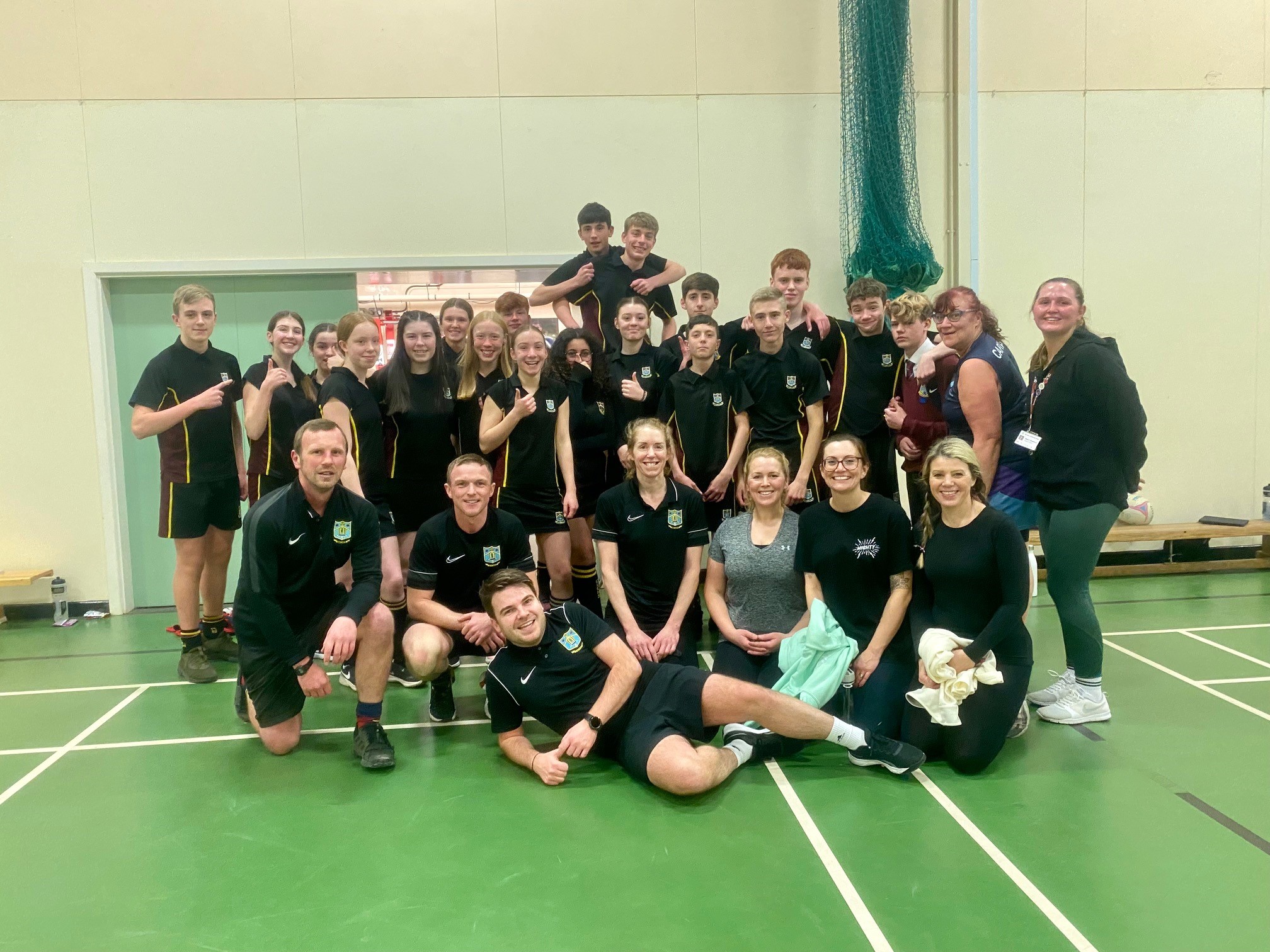 On Thursday lunch the much-anticipated Teachers versus year 10 and 11 mixed netball teams Christmas match took place. Both staff and pupils have been training hard for this event. Year 10’s were first on court against the staff squad. The game was end to end with both sides making key interceptions. Teachers kept their composure under pressure and had a three-goal lead at half time. We managed to build on this in the second half and the game finished 6-0 to staff. A great effort from year 10’s, they made the game a real challenge, ensuring Teachers had to work extremely hard for their goals.