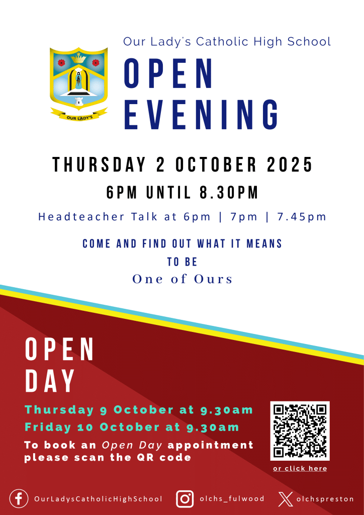 We look forward to welcoming you to our school Open Evening on Thursday 2nd October 2025 at 6pm until 8.30pm