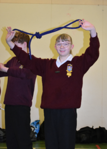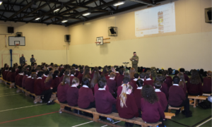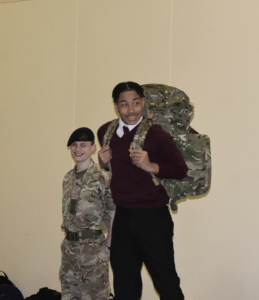 Colour Sergeant Dowd made sure the Year 8s were active in assembly with one of the pupils trying on a fully packed Bergen and other groups working through rope and knot challenges.
